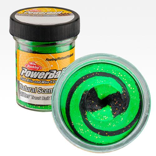 Die amerikanische Firma Berkley entwickelte in den 80er Jahren das erste Powerbait. Es hat eine Konsistenz wie Teig oder Knetmasse und ist formbar. In Powerbait sind verschiedene Duftstoffe zugesetzt, die auf die Nahrungsquellen der Fische abgestimmt sind und die Aufgabe haben, die Fische anzulocken – und genau das kann Powerbait. Die Duftstoffe verbreiten sich effizient im Wasser und ziehen so die Aufmerksamkeit der Fische auf sich.